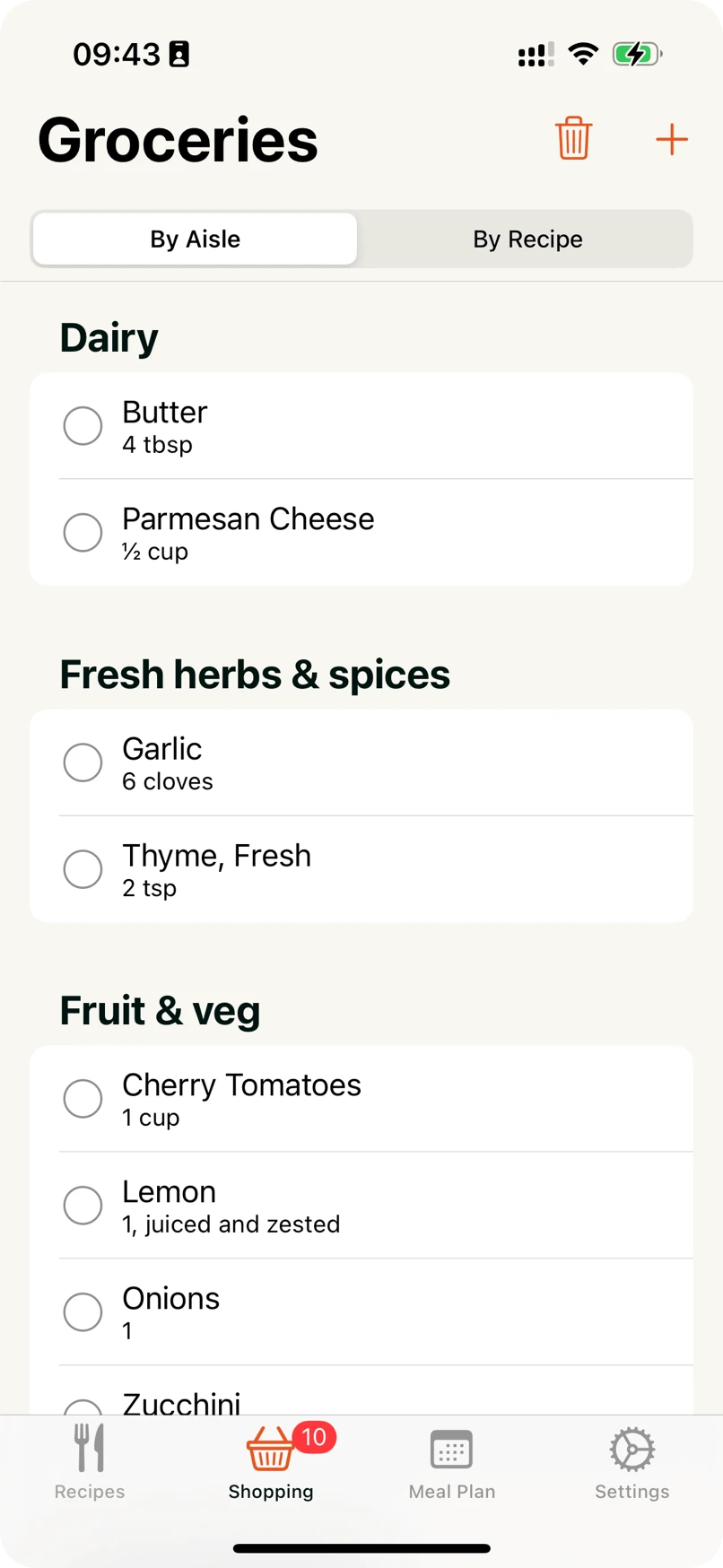 Create your grocery list from recipes